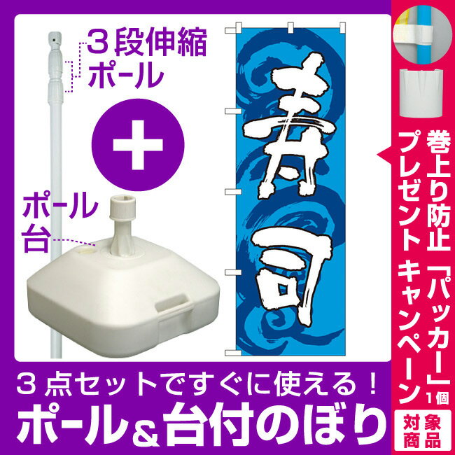 【3点セット】のぼりポール(竿)と立て台(16L)付ですぐに使えるのぼり旗 寿司 青白 (SNB-1022) [プレゼント付](寿司・海鮮)